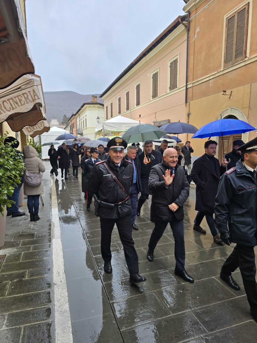 “La cosa bella è potersi avventurare in questi meravigliosi spazi di Norcia – ha affermato Castelli – e dopo dieci anni rivedere aperta la Basilica di san Benedetto; una grande felicità perché vediamo una città che si riprende, una comunità che si concentra sul proprio prodotto più prelibato e iconico ma anche una comunità che ha ripreso a viaggiare secondo quelli che erano gli standard di Norcia. Il peggio è passato, quindi guardiamo al futuro con fiducia e serenità”. “Nero Norcia è una manifestazione molto importante, punto di riferimento per la Valnerina – ha aggiunto Bellini –. La manifestazione deve essere l’elemento trainante per il risorgere della Valnerina, che oltre a ricostruire gli immobili danneggiati deve ripensare anche la sua economia che in questi anni ha subito una forte trasformazione”.