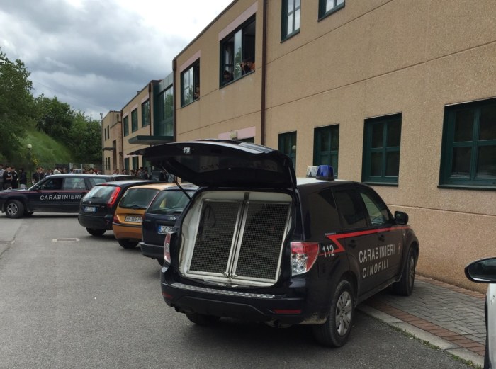 Carabinieri della Stazione Carabinieri di Nocera Umbra, con il prezioso aiuto di Denver, un bell’esemplare di pastore tedesco dei Carabinieri Cinofili, nell’ambito di controlli finalizzati a contrastare lo spaccio ed il consumo di droghe fra gli adolescenti, hanno effettuato un controllo antidroga all’interno dell’Istituto Professionale di Nocera Umbra. I militari, utilizzando un cane antidroga, sono entrati nelle classi e, con grande sorpresa degli studenti, hanno ispezionato scrupolosamente i banchi e gli zaini dei ragazzi. L’attività ha portato alla segnalazione di un diciannovenne alla Prefettura, poiché trovato in possesso di un involucro contenente pochi grammi di marijuana ed hashish. Lo stupefacente, ben occultato nelle scarpe del ragazzo, è stato comunque individuato dal cane che subito lo ha segnalato al conduttore.