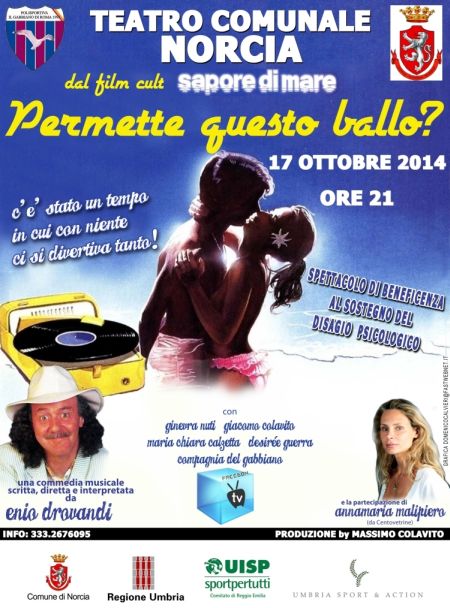 Lo spettacolo, dal titolo “Permette questo ballo”, è ispirato al film “Sapore di Mare”, che nel 1982 vide recitare lo stesso Drovandi, nel ruolo di fotografo, al fianco di Francesco Nuti. “E’uno spettacolo pensato sottoforma di musical – ha detto l’attore toscano – e riserverà uno spazio-omaggio allo stesso Nuti. Vi parteciperanno i ragazzi giunti a Norcia per le Olimpiadi, ma anche gli studenti dell’Istituto omnicomprensivo di Norcia ‘De Gasperi-Battaglia’”. La commedia andrà in scena sia la mattina per le scuole che la sera alle ore 22 per tutta la cittadinanza.