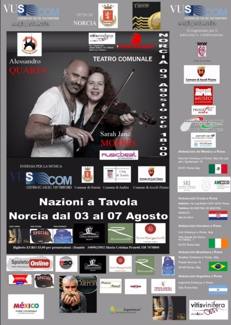 A seguire il concerto di Alessandro Quarta e Sarah Jane Morris alle 18.00 al Teatro Comunale, un inizio di altissima qualità per NAZIONI A TAVOLA che renderà la città di Norcia protagonista.