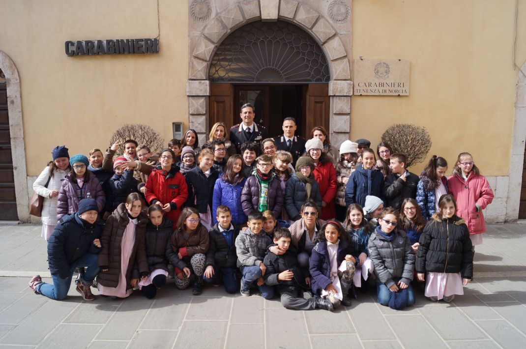 In seno al Protocollo d’Intesa tra l’Arma dei Carabinieri ed il Ministero dell’Istruzione ed in riferimento alle numerose iniziative di legalità a favore degli studenti, questa mattina circa 40 alunni di quinta elementare della Scuola di Norcia, accompagnati dalle maestre, hanno effettuato una visita alla locale caserma dei Carabinieri. A fare gli onori di casa il Comandante Ten. Enrico Alfano ed i suoi collaboratori, che hanno voluto far vedere da vicino i mezzi di servizio, l’equipaggiamento e le apparecchiature tecnologiche, sulle quali i ragazzi hanno mostrato rilevante interesse. Hanno inoltre assistito a lezioni teoriche su come si interviene sulla scena del crimine e si sono sottoposti alla prova di rilevamento delle impronte: un alunno ha addirittura provato l’ebrezza della foto segnaletica.