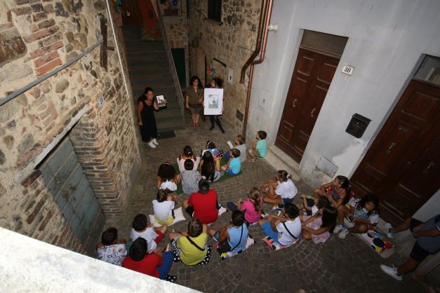 Si tratta di un percorso itinerante lungo le vie dell’antico borgo con dei momenti di ascolto dedicati ai bambini. Quattro lettori in quattro piazzette intratterranno i piccoli leggendo loro una storia.