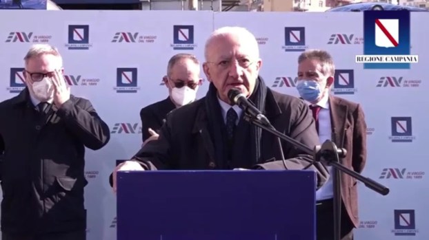 Il governatore della Campania Vincenzo De Luca ha partecipato, alle officine di via Giacomo Leopardi a Napoli nel quartiere di Fuorigrotta, alla presentazione dei nuovi treni Eav per la Cumana.