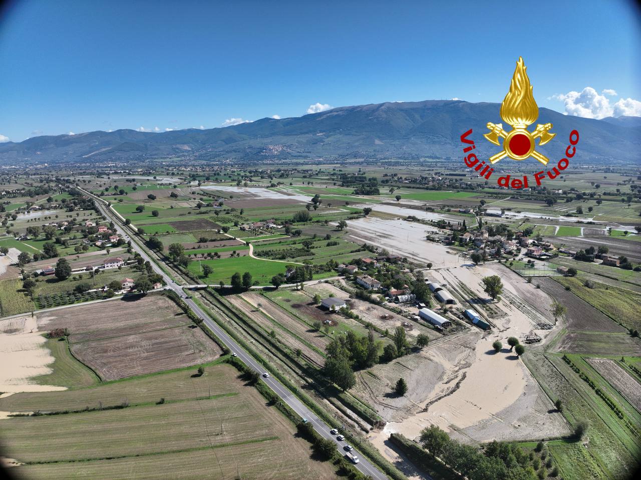 I vigili del fuoco hanno fatto un primo bilancio della situazione intorno alle 9.30 del mattino: “Questa mattina, intorno alle ore 5, squadre dei Vigili del fuoco sono intervenute nel comune di Trevi, in località San Lorenzo, a seguito dell’esondazione del torrente che attraversa la zona. L’acqua ha invaso un piazzale, dove la rete fognaria non riusciva più a garantire il deflusso, raggiungendo le abitazioni limitrofe e provocando allagamenti fino a circa 50 centimetri in alcuni edifici. I Vigili del fuoco, con l’impiego di idrovore e motopompe, stanno operando per allontanare l’acqua e riportare la situazione alla normalità. Ulteriori criticità si sono registrate nel comune di Castel Ritaldi, dove i torrenti Ruicciano e Tatarena hanno esondato, allagando alcune abitazioni. Sul posto sta operando una squadra dei Vigili del fuoco di Spoleto, impegnata con idrovore e motopompe. Nella stessa zona, un’autovettura rimasta bloccata è stata rimossa con il carroattrezzi, mentre un altro veicolo è tuttora fermo in via La Penna, dove sta intervenendo un’altra squadra per il recupero. Un ulteriore intervento è in corso in località Fratta, dove una squadra fluviale dei Vigili del fuoco è impegnata per fronteggiare l’allagamento di alcuni capannoni”.