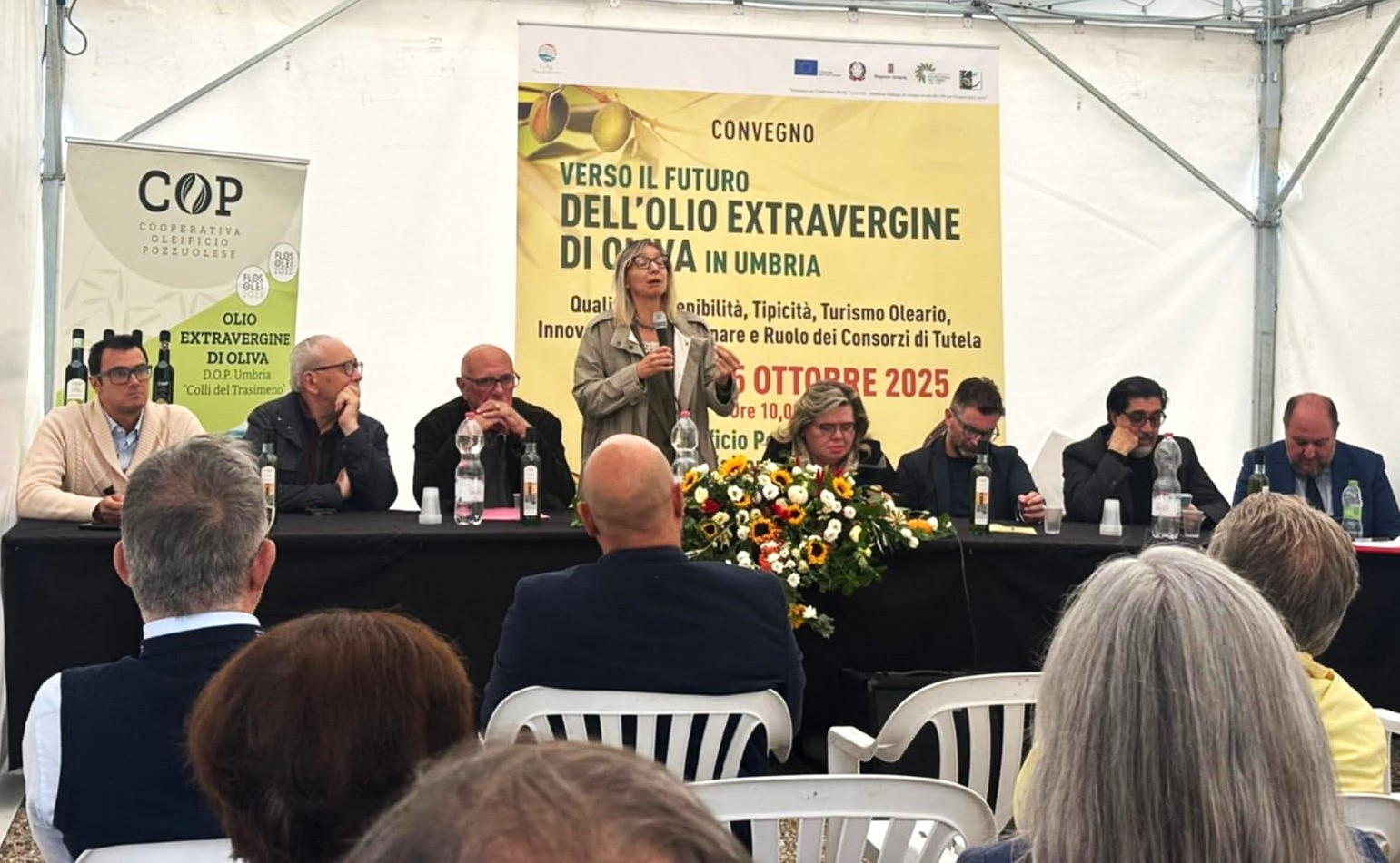 Investire maggiormente nei supporti alle imprese olivicole, sulla formazione di un consorzio di tutela dell’olio e sull’ampliamento dell’apertura ai mercati internazionali, puntando a creare una più ampia economia per l’impresa e un’elevata sostenibilità. E’ un’autentica “task force” di pensiero, tra le tante parti coinvolte, quella che ha delineato le urgenti necessità per incentivare la filiera dell’olio nel corso del convegno “Verso il futuro dell’olio extravergine di oliva in Umbria”, svoltosi domenica scorsa a Pozzuolo Umbro su iniziativa del Gal Trasimeno-Orvietano e del locale Oleificio Pozzuolese.
