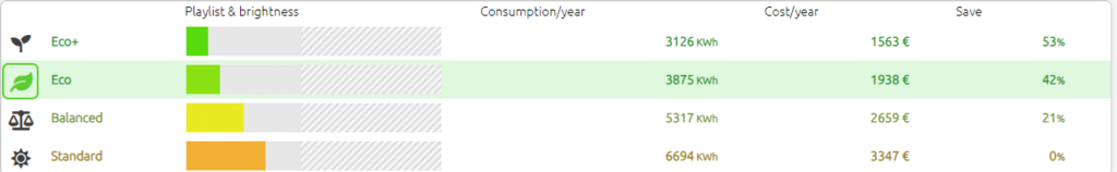 Grazie a modalità di utilizzo regolabili (massima, bilanciata, eco), consente un risparmio energetico fino al 50%. Inoltre, assicura la conformità alle normative sull’inquinamento luminoso, favorendo un utilizzo efficiente anche nelle ore notturne. L’ottimizzazione della fornitura elettrica riduce il picco di assorbimento, contenendo i costi in bolletta.