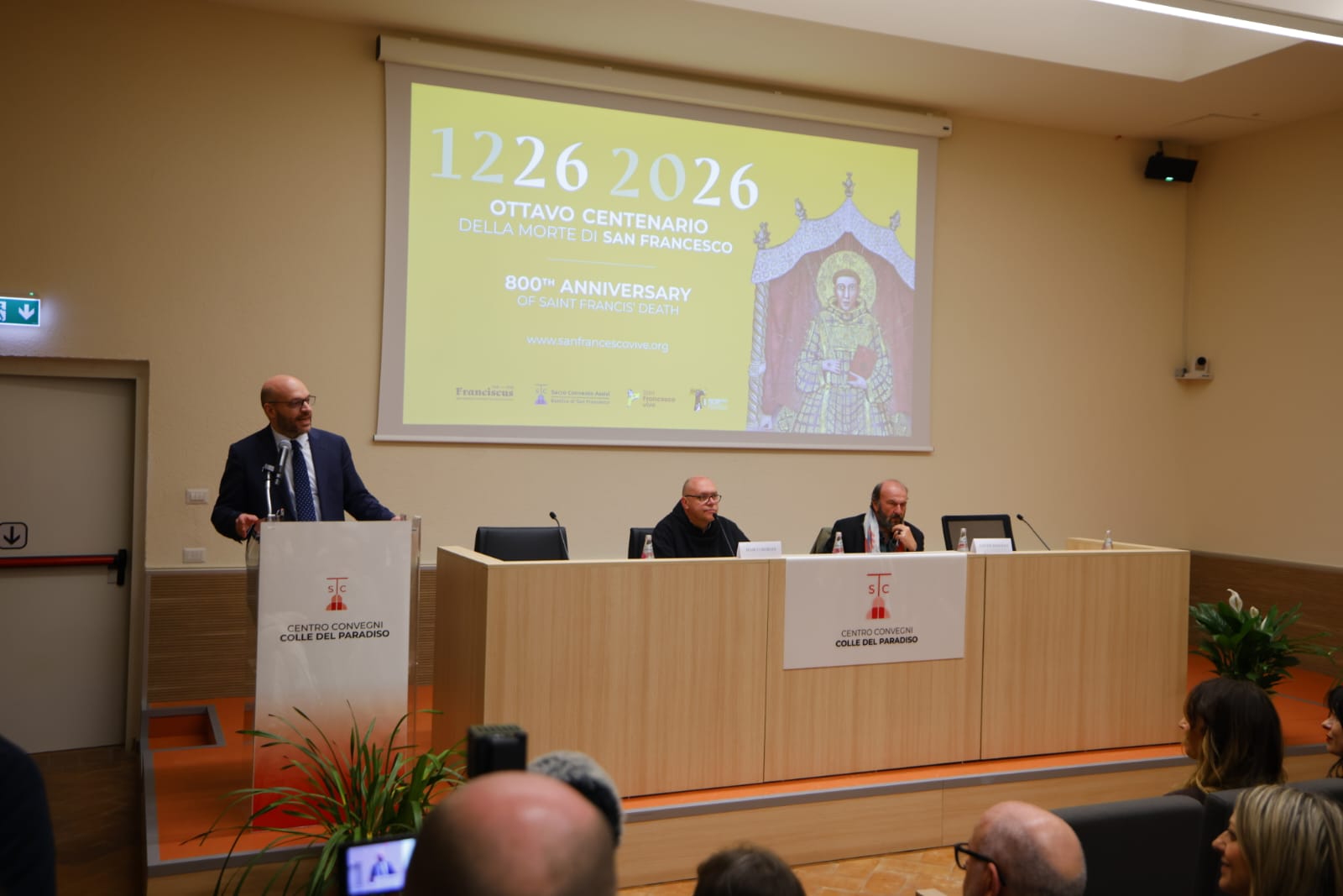 Presso la Sala Cimabue del Centro Convegni “Colle del Paradiso” all’interno del complesso monumentale della Basilica e del Sacro Convento di san Francesco in Assisi, ha aperto il pomeriggio la riflessione tenuta dal p. Custode, fra Marco Moroni, OFMConv; a seguire i saluti istituzionali di Lorenzo Fontana, Presidente della Camera dei Deputati, e Maria Domenica Castelloni, Vicepresidente del Senato della Repubblica, quindi l’intervento di Davide Rondoni, Presidente del Comitato nazionale per la celebrazione dell’VIII centenario della morte di San Francesco d’Assisi.