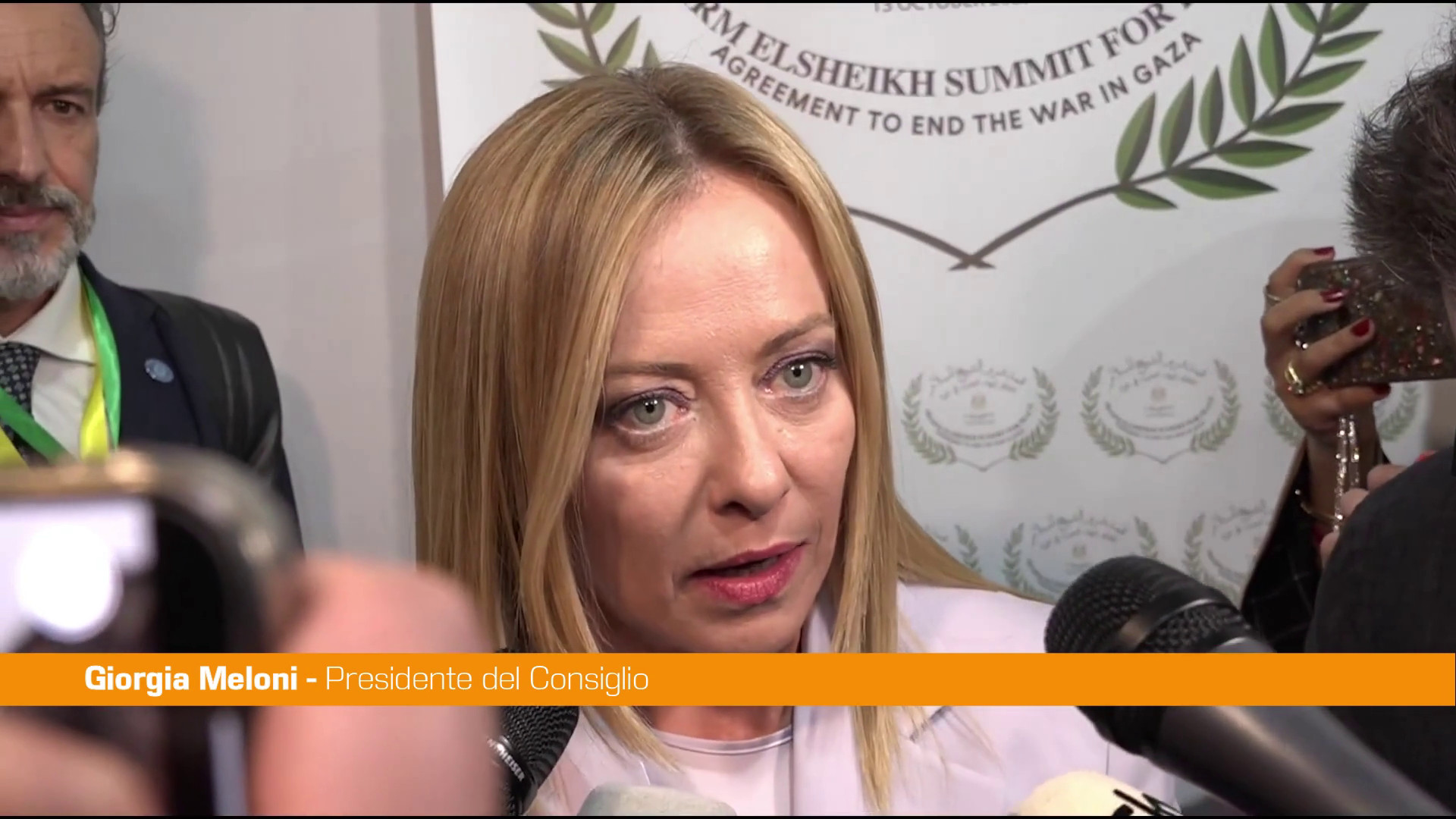 SHARM EL-SHEIKH (EGITTO) (ITALPRESS) – “Siamo fieri che l’Italia ci sia in questa giornata storica. Dobbiamo ringraziare i mediatori che hanno spinto e dato un mano. E’ un percorso molto lungo, noi oggi abbiamo una prima fase ma è un’occasione che non si vedeva da tantissimi anni per una pace giusta e duratura, un lavoro lungo che si basa sul progetto dei due Stati”. Lo ha detto il presidente del Consiglio, Giorgia Meloni, nel corso di un punto a Sharm El-Sheikh commentando la firma dell’accordo di pace per Gaza. La cessazione delle ostilità “è un grande successo di Trump e credo che abbia ragione nel dire che è il più grande successo diplomatico, anche se gli auguriamo di raggiungerne altri, a partire dall’Ucraina”. fsc/mca3 Fonte Video: Giorgia Meloni