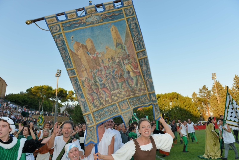Il passato torna presente e il presente si veste di storia. Città della Pieve è pronta a calarsi nella 44esima edizione del Palio dei Terzieri. L’evento che dal 10 al 21 agosto rinnova l’atmosfera rinascimentale della Città, si arricchisce ad ogni edizione di spettacolari sorprese. E quest’anno le novità sono veramente tante a partire dalla reintroduzione dei carri allegorici (antichissima e grandiosa tradizione che l’Ente Palio ha scelto di recuperare e affidare alla capacità di creativa di ciascun Terziere) che sfileranno nel corteo storico che precede la Caccia del Toro, fino ad una regia unica che coordinerà le rappresentazioni all’ingresso nel Campo de li Giochi. Così, malgrado l’assoluto riserbo che viene mantenuto sulle singole rappresentazioni, quello che emerge è una precisa volontà di aumentare esponenzialmente il livello qualitativo sotto il profilo della rievocazione, che si rispecchia nell’attenzione ai particolari, da quelli gastronomici (piatti insostituibili come le “lumache al pizzico” del Casalino, lo “stinco dell’arciere” del Borgo Dentro e la “Carpa regina dell’arciere” vengono serviti rigorosamente su stoviglie a tema e nel contesto caratteristico delle Taverne) a quelli degli eventi che si collocano nell’arco della manifestazione. Ogni sera spettacoli di piazza, rappresentazioni teatrali, botteghe artigiane si alterneranno per offrire al pubblico qualcosa di unico nel panorama regionale. E per offrire una piena comprensione del corteo e della sfida di domenica, viene introdotta una voce narrante che descrive i costumi, le figure ed i gruppi storici. Ruolo primario nella manifestazione resta sempre e comunque quello dei Terzieri, guidati dai presidenti Gabriele Bordi (Borgo Dentro), Giuseppe Peciotti (Casalino), Michele Gorello (Castello), realtà che animano la vita culturale della città non soltanto nel periodo del Palio, il sindaco Fausto Scricciolo non ha mancato di rimarcarlo e di sottolineare come la collaborazione aldilà del sano agonismo sia il motore propulsivo della Città.