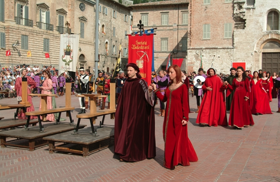 «Il Palio rappresenta il coronamento delle celebrazioni del mese di maggio legate al Patrono S. Ubaldo – ha commentato il sindaco Stirati – nel segno di una nobiltà di tradizioni che affondano le radici nei secoli e rappresentano un tratto distintivo della nostra comunità. Gubbio è una piccola capitale della cultura, ‘la più bella città medievale’, unica e originale tanto che ora c’è un ‘Festival’ dedicato proprio ai temi di quel periodo storico. Dunque, non di rievocazioni si tratta ma di un patrimonio plurisecolare con profonde radici storico-culturali. I Balestrieri sono ricordati nello Statuto comunale insieme alla Festa dei Ceri, ed essi ben rappresentano la città nei suoi valori. Con loro abbiamo rafforzato una collaborazione che viene da lontano, rinnovando anche la disponibilità all’uso della sede, il Palazzo del Bargello, esempio di architettura medievale non solo all’esterno ma anche nell’interno, ben conservato e sede di esposizioni museali. E proprio all’arte è volto sempre più l’impegno dei Balestrieri come l’appuntamento del Concerto di questa sera. Un ‘bocca al lupo’ speciale dall’amministrazione ai Balestrieri di Gubbio anche per questa edizione 2018, affinché si facciano onore come è successo negli ultimi anni».