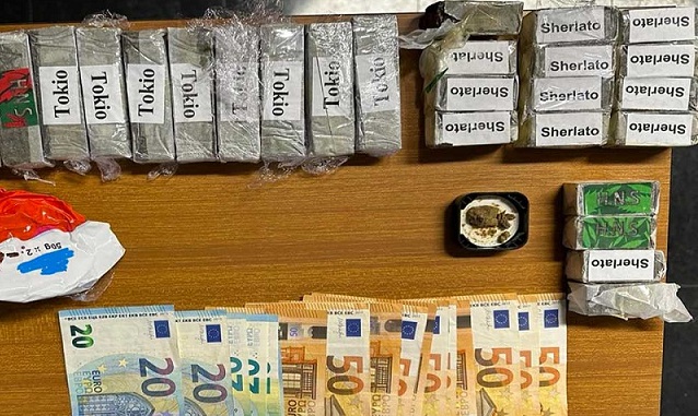 Nella tasca di uno zaino sul sedile del passeggero gli uomini dell’Arma hanno trovato un involucro termosaldato di cellophane con la scritta di una nota merendina in commercio, contenente ben 10 panetti di hashish, per un peso complessivo di un chilo. Questi erano a loro volta suddivisi in altri panetti dalla forma rettangolare: 12 dal peso di 50 grammi cadauno riportanti la dicitura “Tokio” e 16 con la scritta “Shieravo” per un peso di 25 grammi ciascuno.