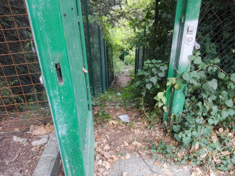 Oltre che aver costatato l’effettiva lacerazione della recinzione, ci siamo accordi che, come si vede chiaramente dalle foto allegate, la cancellata di servizio per il monitoraggio e la manutenzione dello stato della terra sopra le galleria della Pallotta (lato nord), la quale dovrebbe, appunto per una normale sicurezza essere sprangata, risulta completamente aperta.