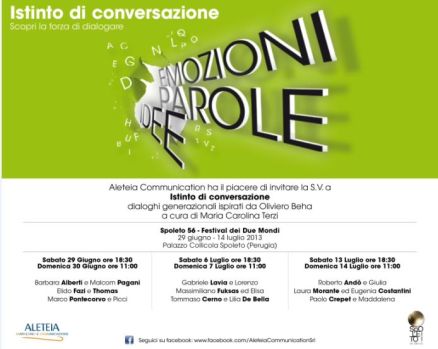 “L’idea nasce dall’incontro tra una mia trasmissione radiofonica, ‘Radio a Colori’ su Rai Radio 1, e una suggestione di Mauro Luchetti, spoletino, nato e cresciuto con il ‘Festival dei 2Mondi’, proprietario e fondatore della società Aleteia Communication. Nella mia trasmissione, fine secondo millennio, avevo inserito la rubrica ‘Istinto di conversazione’ giocando ovviamente sull’istinto di conservazione delle persone. Poi l’incontro con Mauro: Aleteia significa verità, mi disse. Perché non facciamo qualcosa sulla verità? Ma la verità, pensammo, è prima di tutto parola. Allora se dobbiamo ragionare sulle parole e liberarle dalla sovrastrutture, significa liberare l’istinto. Quello di conversazione. Ecco com’è andata”.