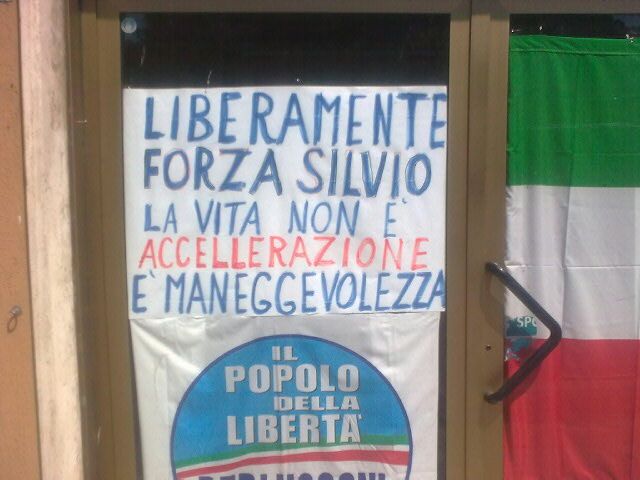 Il Pdl di Spoleto ha un nuovo club. E’ quello fondato dal consigliere comunale Maurizio Hanke e che vanta quale presidente onorario Enzo Paciotti. La notizia era trapelata qualche mese fa, a luglio per la precisione, ma solo in questi giorni è stato registrato nei Club della Libertà. A comunicarlo ufficialmente è stato lo stesso Paciotti, uomo a cui non manca l’ironia a leggere gli avvisi che affigge nella sede di San Giovanni di Baiano e gli stessi comunicati stampa. Peccato che la grammatica non sia il suo forte, ma questo può essere anche un piccolo neo quando è l’amore a trionfare su tutto (quello del Paciotti per il premier Berlusconi). Dopo il cartello di luglio, che aveva suscitato non poca ilarità fra la popolazione baianese (qui), arriva alle redazioni il comunicato con il quale annuncia la registrazione del club e dispensa consigli nientepopodimeno che al presidente di Fli Fini che, sta a guardare il dettaglio, per Paciotti si chiama Giancarlo.