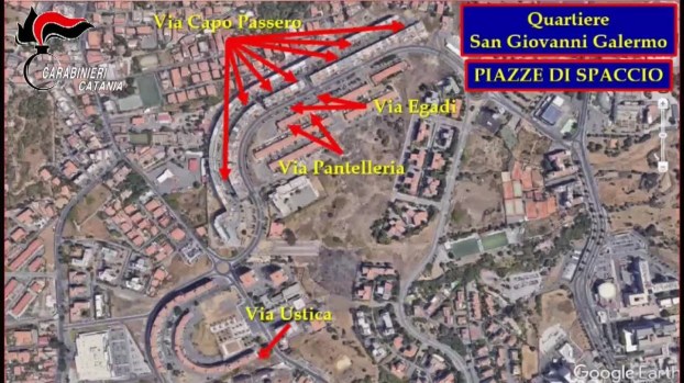 I carabinieri hanno disarticolato i diversi clan criminali che gestivano 12 imponenti “piazze di spaccio” radicate nel popolare quartiere di San Giovanni Galermo, roccaforte storica del traffico e della vendita di stupefacenti, a Catania. Centouno persone sono state raggiunte da misure cautelari. Fontamentale il contributo di due pentiti, uno dei quali avrebbe sostituito il responsabile del clan Nizza. vbo/com