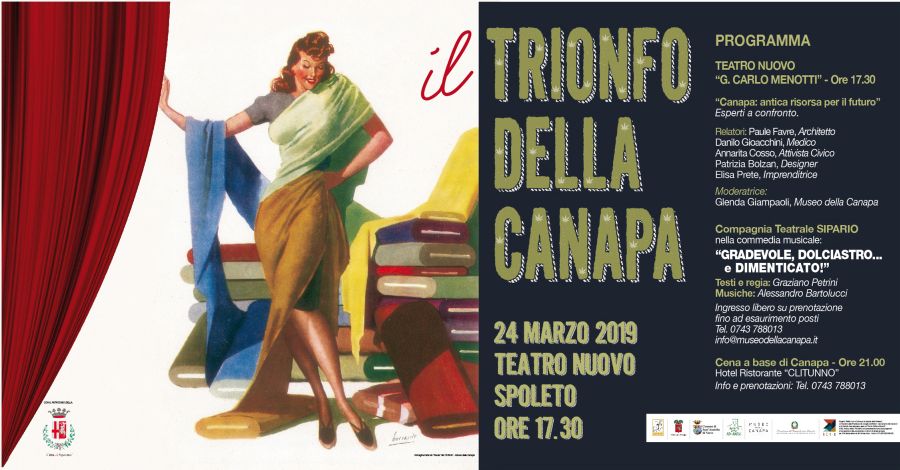 Il 24 marzo alle 17:30 il Teatro Nuovo “G.C. Menotti” di Spoleto ospiterà lo spettacolo teatrale “Gradevole, dolciastro e… dimenticato“, momento saliente dell’evento “Il trionfo della Canapa”, pensato per raccontare il passato, il presente e il futuro della pianta della canapa.