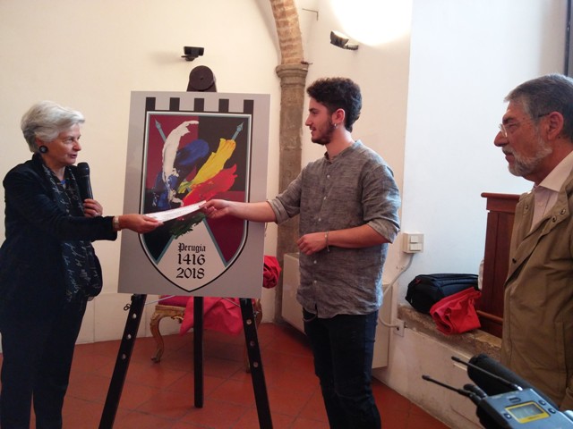 Perugia 1416 gioca d’anticipo e svela il suo Palio d’artista 2018. A realizzarlo è stato Filippo Moroni, classe 1996, di Castiglione del Lago, iscritto al terzo anno del corso di Pittura dell’Accademia di Belle Arti “Pietro Vannucci” di Perugia (Aba). È lui il vincitore del concorso riservato agli studenti, indetto dall’associazione Perugia 1416 che ha messo in palio 500 euro per il primo classificato.
