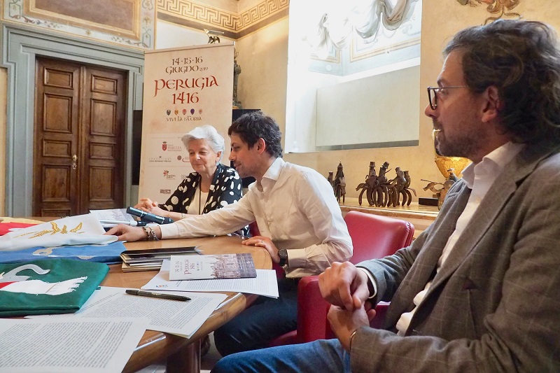 Il corteo che si fa trionfale; i rionali che per per una sera saranno attori; la sfida del Tiro del giavellotto più dinamica ed avvincente. Sono queste le principali novità di Perugia 1416, annunciate dalla presidente dell’associazione, Teresa Severini, insieme al sindaco Andrea Romizi e Stefano Venarucci, coordinatore artistico della manifestazione, durante la presentazione del programma.