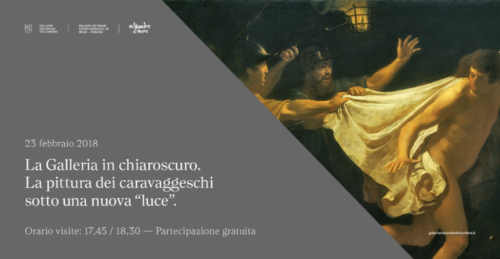 Venerdì 23 febbraio la Galleria Nazionale dell’Umbria aderisce alla campagna M’illumino di Meno 2018 – Caterpillar Radio2, per sensibilizzare sulle tematiche del risparmio energetico e dell’uso consapevole delle risorse, proponendo un’esperienza di visita inedita e suggestiva, “La Galleria in chiaroscuro. La Pittura dei caravaggeschi sotto una nuova “luce”.