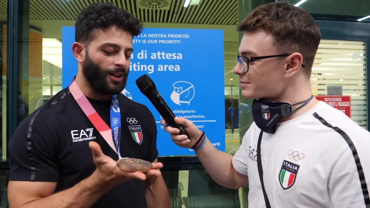 [videojs_video url="https://video.italpress.com/play/mp4/video/a0jr2m58pbv10n5bo17xvlg9"] Grande accoglienza a Fiumicino per il pesista siciliano, bronzo ai Giochi di Tokyo. A dargli il bentornato anche gli altri due medagliati azzurri, Bordignon e Zanni. gm/glb/mrv/gtr