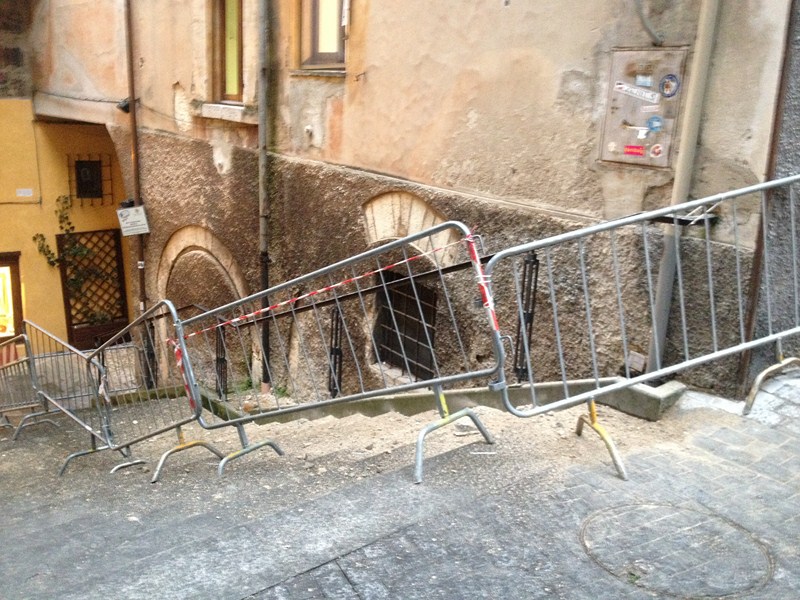Attimi di paura al centro storico di Spoleto dove un pezzo di intonaco si è staccato da un palazzo franando rovinosamente a terra. Il fatto è accaduto sulle scalette di via Salara Vecchia, una delle zone pedonali più trafficate della città del Festival, per lo più nel tardo pomeriggio: una fortuna che nessuno sia rimasto ferito. Il cedimento dell’intonaco, e di un pezzo di cornicione, è stato causato con ogni probabilità dalle eccezionali piogge cadute in questi giorni, che hanno ulteriormente indebolito una struttura già abbastanza vecchia. Sul posto sono arrivati i Vigili Urbani e gli operai dell’Ase che hanno transennato la sede stradale immediatamente sotto il palazzo, invasa dai detriti.