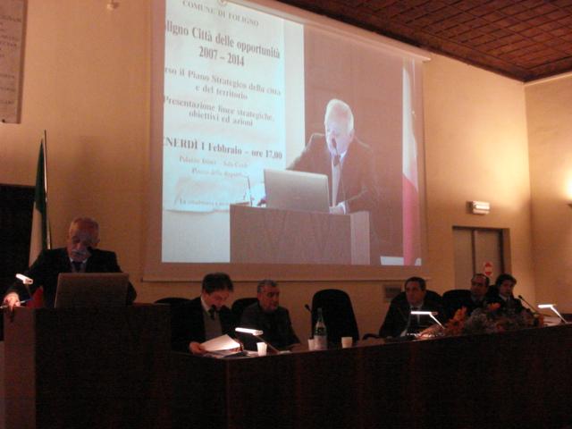 La sala Rossa di Palazzo Trinci, ieri pomeriggio, ha accolto molto pubblico curioso di ascoltare la proposta, le linee principali del Piano Strategico per Foligno. Il sindaco Marini, il vice-sindaco Nando Mismetti, il tecnico Luca Fondacci, personalità politiche come paolo Trenta, Salvatore Stella, Joseph Flagiello, il presidente della Fondazione Cassa di Rispermio Alberto Cianetti, Domenico Doni, Alfiero Moretti, Rita Zampolini, Riccardo Meloni, Aldo Amoni, Giovanni Bianchini, tutti presenti per il piano “Foligno città delle oppportunità”. “Un documento programmatico che disegna le tappe di sviluppo della città di Foligno e del suo territorio fino al 2014 – ha spiegato il sindaco Marini – una pianificazione strategica finalizzata ad aggregare e coinvolgere tutta la comunità locale. Coma rappresentanti dei cittadini sia l'amministrazione che gli enti locali sono chiamati a comunicare ed avere rapporti sempre più stretti affinché un buon lavoro di coordinazione sia llo strumento innovativo per i processi di sviluppo del territorio”. Un piano che prevede 32 obiettivi e 192 azioni, tutto per uno sviluppo economico che sia al passo con quello globale.