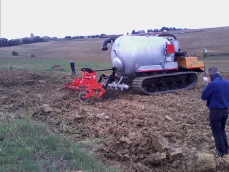 Due le aziende coinvolte nella prima fase, con l’utilizzo di una macchina semovente cingolata a basso calpestamento, in modo da salvaguardare la struttura del terreno senza compromettere le successive lavorazioni. Il mezzo distribuisce il liquame su terreno libero da coltura interrandolo: si limita così lo scorrimento in superficie nei terreni in discesa e l’emissione di azoto ammoniacale in atmosfera.