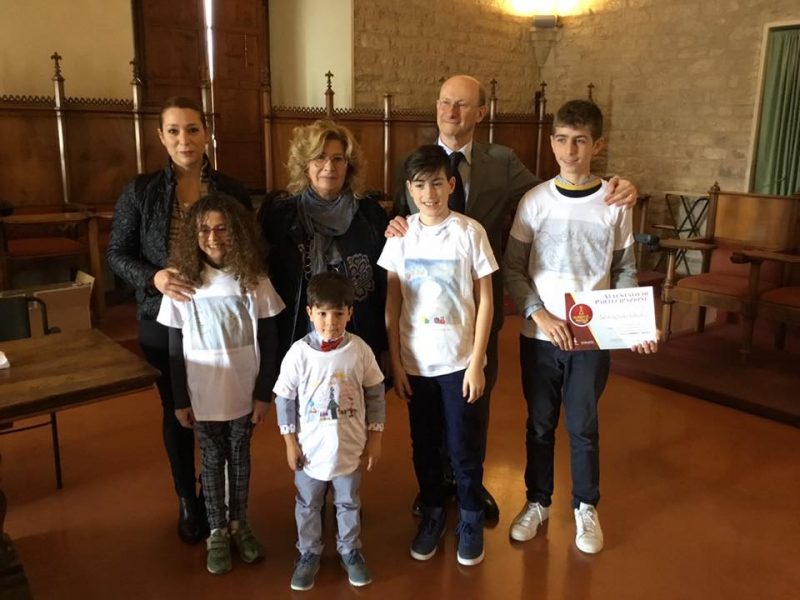 Erano presenti i vincitori delle tre categorie in gara (I-III elementare, IV-V elementare e I-III media), i familiari e i rappresentanti delle relative scuole di appartenenza. Il concorso infatti, oltre a premiare gli autori dei disegni, prevede un riconoscimento anche per le scuole. Quest’anno, le scuole di provenienza dei vincitori sono state la Primaria San Salvo di Chieti, l’Elementare Ariodante Fabretti di Perugia e, per l’ultima categoria, visto che i vincitori si sono classificati ex equo, la Secondaria di Primo Grado Ottavio Serena-Pacelli di Altamura (BA) e l’Istituto Comprensivo Paolo Orsi di Siracusa.