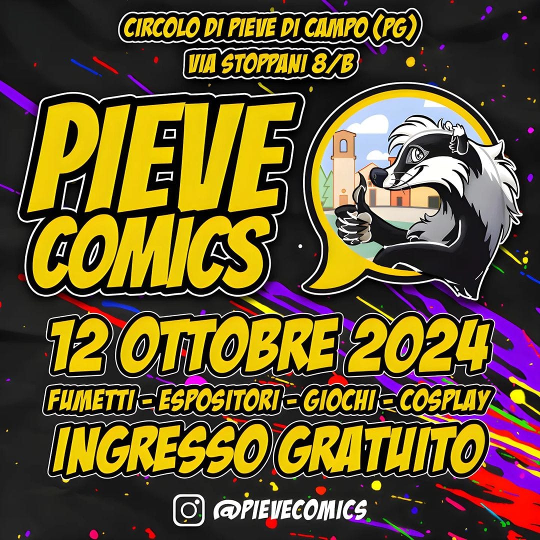Al Circolo di Pieve di Campo, in Via Stoppani 8/b, andrà in scena la 1°edizione del “Pieve Comics”. Domani, sabato 12 ottobre, si svolgerà un’intera giornata dedicata a fumetti, giochi, espositori locali e tanto divertimento. Si potranno esplorare stand di fumetti e giochi, incontrare espositori umbri e partecipare alla gara cosplay, perfetta per tutti gli appassionati. Ci sarà, inoltre, una grande parata con sosta presso il Bar Gelateria “La Pieve” di Mancini Sergio & Figli. Durante la giornata, street food, anche per celiaci. L’ingresso alla manifestazione è gratuito e aperto a tutti (grandi e piccoli).