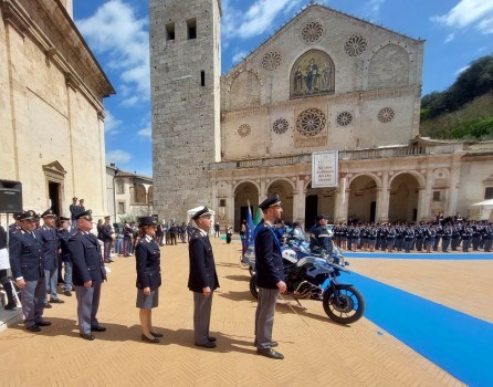 Festa grande a Spoleto per la polizia di Stato: piazza Duomo è stata infatti scelta mercoledì mattina per le celebrazioni promosse dalla Questura di Perugia in occasione del 171esimo anniversario del corpo, alla presenza del vice direttore generale della pubblica sicurezza, prefetto Stefano Gambacurta, che tra l’altro è umbro. A fare gli “onori di casa” il questore di Perugia, Giuseppe Bellassai, ed il sindaco di Spoleto, Andrea Sisti. Presenti le massime autorità civili e militari del territorio provinciale, a partire dal prefetto Armando Gradone, la presidente della Regione Donatella Tesei, la presidente della Provincia Stefania Proietti, i sindaci del territorio, i vertici della giustizia perugina e spoletina, l’arcivescovo di Spoleto – Norcia mons. Renato Boccardo.