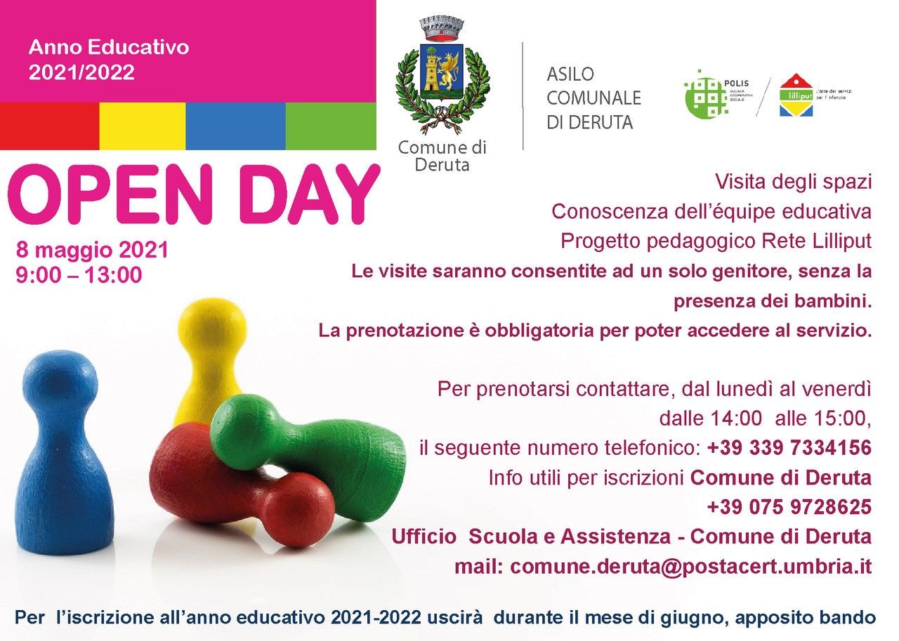 L’8 maggio dalle 9 alle 13 sarà possibile, per i genitori, visitare l’asilo di Deruta. Questa disposizione è stata voluta dall’assessorato alle politiche scolastiche in collaborazione con la cooperativa Polis che gestisce il nido ed è rivolta alle famiglie che si apprestano a compiere l’importante scelta del nido.