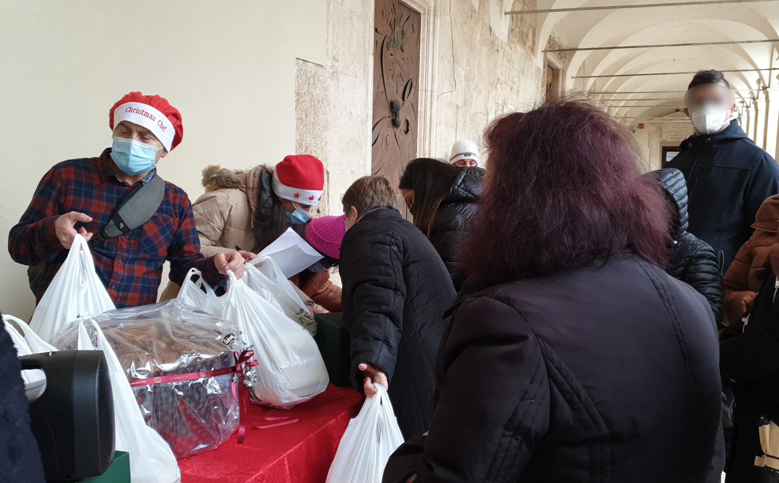Tante le famiglie presenti, assistite dalle associazioni caritative della diocesi, altre della parrocchia di Santa Maria del Rivo e delle case di accoglienza, famiglie che vivono particolari situazioni di bisogno a seguito della pandemia, immigrati e anziani, che ordinatamente hanno ricevuto il pranzo, i pacchi natalizi offerti dall’Ast, il pampepato donato dagli studenti dell’Istituto “Casagrande – Cesi” di Terni e i regali per i bambini offerti sempre dall’associazione “Terni col cuore”.