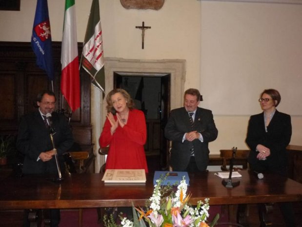 La prima premiata con il “Premio Brancaleone da Norcia”, prima edizione di un progetto promosso dal Comune di Norcia su ideazione di Alberto D’Atanasio e con la collaborazione della Provincia di Perugia, è stata Paola Gassman. L’attrice, figlia del grande Vittorio Gassman e dell’attrice di prosa Nora Ricci, è stata a Norcia lo scorso venerdì, per la cerimonia tenuta presso la sala comunale del Consiglio Maggiore, alla presenza del Sindaco Gian Paolo Stefanelli, dell’assessore al turismo Lavinia D’Ottavio e dello stesso D’Atanasio. A fare la platea, tra gli altri, una cinquantina di artisti che, nelle loro opere pittoriche e scultoree esposte nell’omonima mostra “Brancaleone da Norcia – mito, storia e fantasia” presso l’auditorium di San Francesco, hanno dato corpo e anima non solo al personaggio di Brancaleone (interpretato da Vittorio Gassman) ma hanno anche tradotto nelle loro opere i simboli del cavaliere e della cavalleria. Ad introdurre all’artista l’iniziativa è stato il professor D’Atanasio mentre a fare gli onori di casa il sindaco Stefanelli, felice di intraprendere a Norcia un progetto culturale di così ampio respiro, con grandi nomi del cinema e dello spettacolo. “Sono venuta a Norcia diverse volte in occasione della Mostra del tartufo nero – ha affermato la Gassman – e ogni volta questa città mi affascina”.