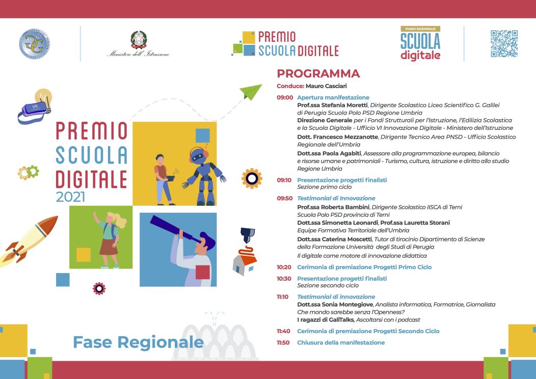 La ‘sfida’ tra le scuole dell'Umbria continua con il Premio Scuola Digitale 2021, Previsto un Evento live. Conduce Mauro Casciari.