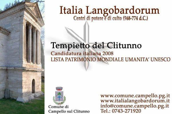 Si terrà lunedì 30 marzo alle ore 16.00 a Campello sul Clitunno, presso la Residenza d'Epoca Vecchio Molino, la presentazione della Rete “Italia Langobardorum-Centri di Potere e di Culto (568-774 d.C.)”, che unisce i sette comuni candidati ad entrare nella Lista del Patrimonio Mondiale dell'Umanità UNESCO.