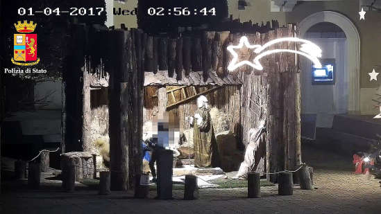 Dall’esame attento delle singole inquadrature i poliziotti sono riusciti ad individuare chi aveva agito: tra un gruppo di quattro giovanissimi, due si erano avvicinati al Presepe e mentre gli altri stavano a guardare, spettatori divertiti, compivano lo scempio. La nitidezza delle immagini ha messo in evidenza tutta l’aggressività con la quale i due si sono resi responsabili del danneggiamento: hanno preso la rincorsa e con calci abbattevano le statue.