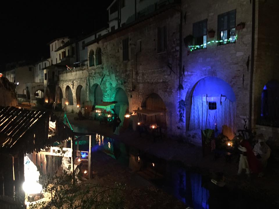 Da quest’anno anche Foligno può vantare il suo presepe vivente: la prima edizione è andata in scena proprio in occasione del Capodanno ed è stata subito un successo andato oltre le più rosee aspettative. Una location d’eccezione, quella scelta dalla Caritas Diocesana e dall’Arca del Mediterraneo, la scene della Natività hanno avuto come cornice quella dei Portici de le Conce, l’angolo più suggestivo e caratteristico del centro storico. Il cuore di Foligno, proprio a ridosso del Mulino de Sotto dove ha sede il quartier generale dell’Arca del Mediterraneo. Un presepe separato ed al tempo stesso unito dallo scorrere delle acque del vecchio Canale dei Molini, alla sola luce delle fiaccole: un effetto scenico straordinario, che ha conquistato le centinaia di fedeli, spettatori e curiosi che hanno avuto l’occasione di vederlo. Visibilmente emozionato anche Sua Eccellenza Monsignor Gualtiero Sigismondi Vescovo della Diocesi di Foligno che ha visitato il presepe folignate con un’attenzione del tutto particolare. Perfettamente ricostruire scena di vita quotidiana dell’epoca, proprio così come raccontate dalle scritture: la capanna, l’osteria, l’albergo che aveva rifiutato l’ospitalità a Giuseppe e Maria. Oltre una ventina di personaggi, tra cui un bambino di appena dieci giorni ad interpretare Gesù Bambino. La rappresentazione è durata circa due ore, dalle 18 alle 20 con ripetizioni ogni quarto d’ora. Tra le novità da segnalare, la ‘presenza straordinaria’ della figura di San Francesco. Uno spettacolo assolutamente gratuito, che verrà riproposto in occasione dell’Epifania venerdì 6 gennaio nello stesso orario. E già si pensa ad alcune interessanti novità, come l’arrivo dei Re Magi a cavallo e la possibilità di estendere la location agli Orti Orfini dove allestire l’accampamento di un villaggio romano. In rappresentanza dell’amministrazione comunale era presente l’assessore al Sociale, Maura Franquillo. Segnate quindi in agenda la data del sei gennaio per l’appuntamento con il Presepe vivente di Foligno, già considerato uno dei più suggestivi dell’Umbria. E chi ben comincia…