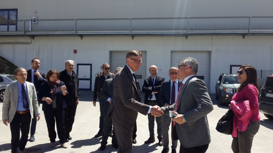 Visita a Norcia del presidente di Lega coop centro Italia Mauro Lusetti tappa del suo giro alle zone terremotate del centro Italia.