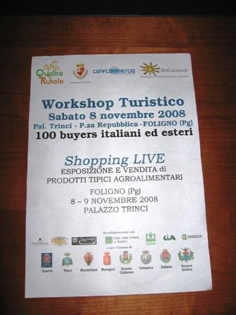 La borsa, studiata per un particolare target di operatori, legati al mondo dei circoli aziendali, con una forte richiesta di turismo rurale di qualità, che rappresentano non meno di 40mila famiglie, interessate alla conoscenza del territorio rurale e dei suoi prodotti tipici, ha interessato anche gli altri Comuni della zona (Valtopina, Bevagna, Gualdo Cattaneo, Sellano, Spello, Montefalco, Trevi, Nocera Umbra). Nel corso della borsa del turismo rurale gli operatori, italiani e stranieri, hanno visitato i territori, seguendo 3 itinerari (montagna, vino, olio).