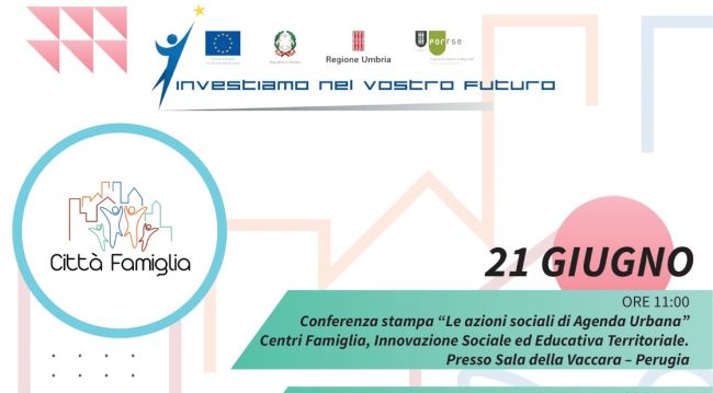 Prenderà il via ufficialmente lunedì 21 Giugno a Perugia il progetto Città Famiglia, che vede coinvolte un gruppo di associazioni che si occupano di tutto ciò che ruota attorno al sistema famiglia.