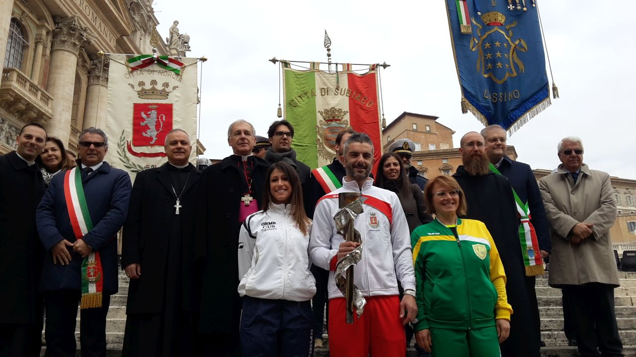 Proseguono le celebrazioni del `Marzo Benedettino`. Di ritorno da Bruxelles, dove la fiaccola `pro Pace et Europa una` è stata accolta dal Presidente Antonio Tajani al Parlamento Europeo, riprende la sua marcia in Italia.