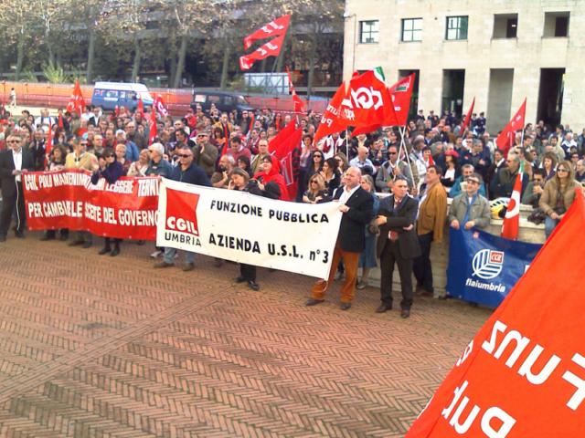 “Stamattina a Perugia circa 1000/1500 lavoratori – spiegano dalla Cgil Umbria – hanno preso parte al corteo. La situazione si è un po' complicata per l'improvvisa disdetta della Uil, che fino a poco prima aveva confermato la sua adesione alla manifestazione. Si era deciso così, anche se aveva firmato l'accordo con Brunetta, aveva comunque deciso per questa unione con la Cgil. Alla fine hanno organizzato autonomamente una manifestazione in un centro congressi di Perugia. Si è dunque determinata un'ulteriore spaccatura. Ci fa piacere che ci sia stata – concludono dal sindacato – una buona rappresentanza di lavoratori privati. Folta la delegazione della Perugina, ma anche del mondo della scuola. In generale la partecipazione alla manifestazione è stata importante. Un dato per tutti: per gli uffici dell'Inps si è registrata un'adesione che va oltre l'80%”.