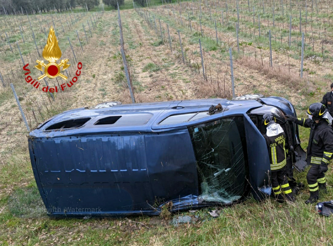 Un pulmino con a bordo 8 operai è uscito di strada finendo nella scarpata sottostante ribaltandosi. È successo a Baschi, in località Case Nuove.