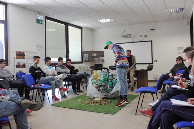 In sostanza è stato uno smuovere le coscienze dei ragazzi verso il non produrre rifiuti, non tanto nel porre rimedio al loro smaltimento. Pierluigi, ha fatto toccare con mano quello che effettivamente produciamo… in senso di rifiuti. Il viaggio scolastico ha toccato le tappe fondamentali del lavoro di Pierluigi, le mete italiane e quelle europee, fino al parlamento italiano e quello europeo a Bruxelles.