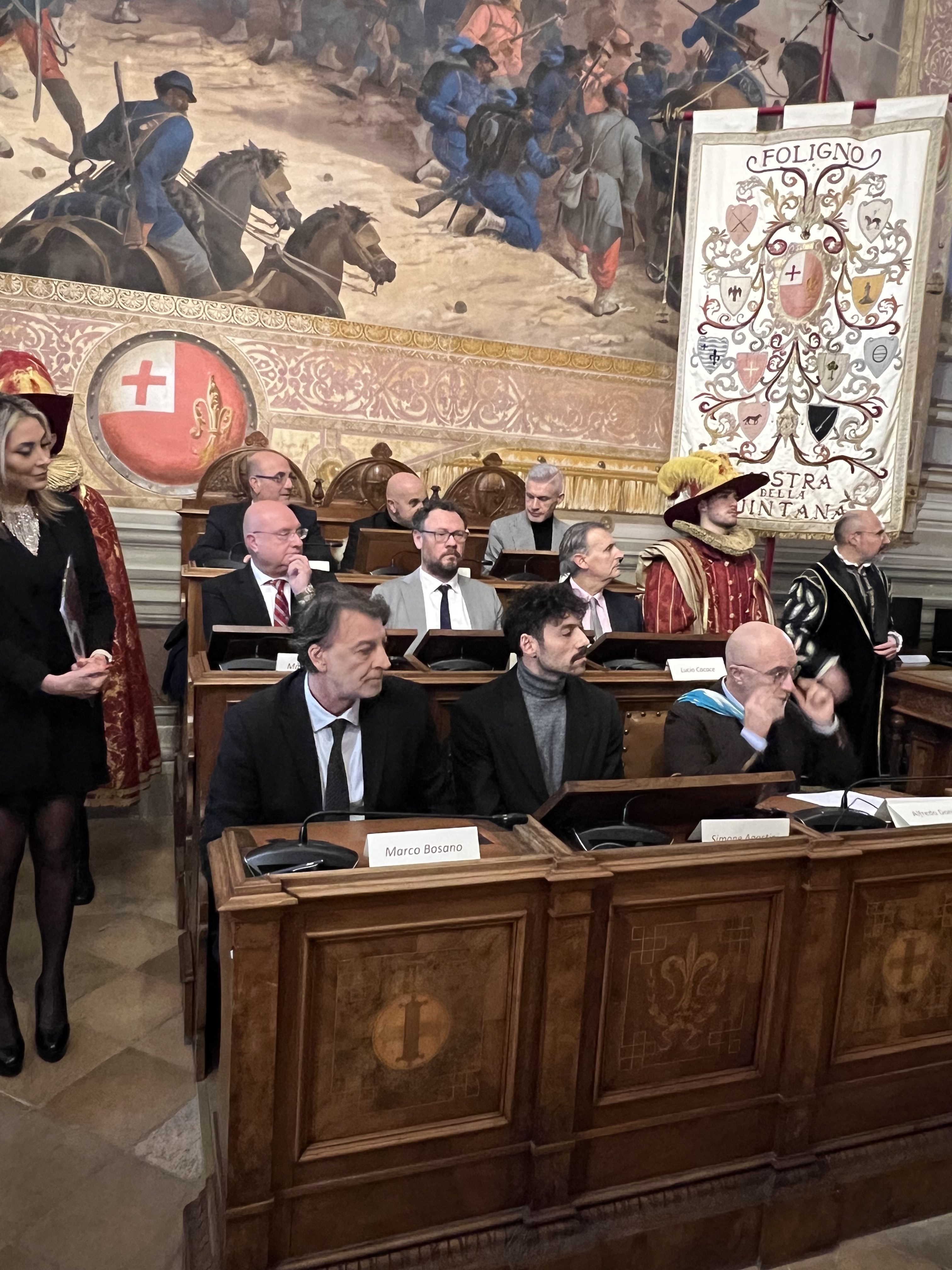 La macchina della Quintana è ufficialmente accesa. Dopo il turno elettorale della scorsa settimana, si è svolta nell’aula consiliare la cerimonia di insediamento del nuovo direttivo della Quintana con la distribuzione delle deleghe ai magistrati neoeletti. A rendere ancor più solenne il momento anche il vescovo Domenico Sorrentino e i rappresentanti di tutte le forze dell’ordine. “Siamo partiti con entusiasmo e con forte motivazione – ha detto Metelli – e nei prossimi quattro anni saremo chiamati a scrivere la storia rimettendo mano allo Statuto in maniera tale da testimoniare che la Quintana diventi ufficialmente una tradizione della città e non più una rievocazione storica“.