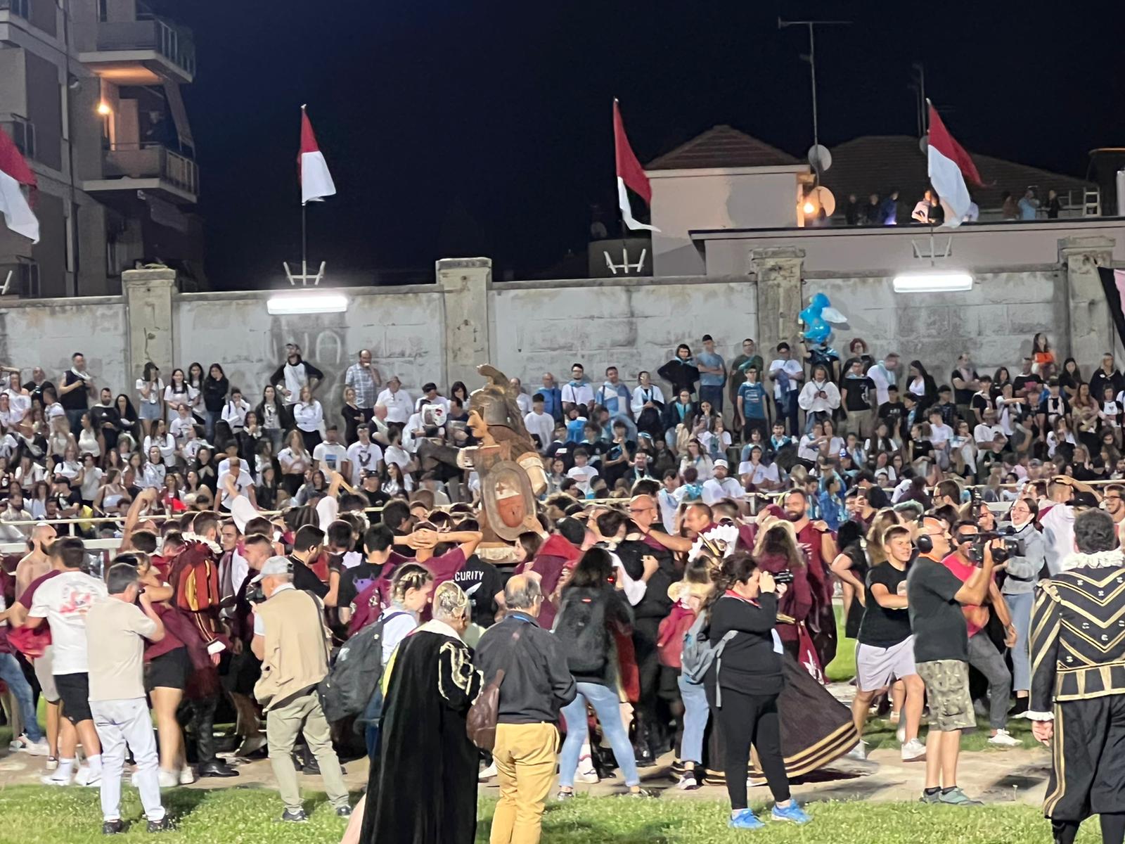 Campo de li Giochi a livelli pre covid per la Giostra della Sfida 2022, che ha anche segnato il ritorno del corteo storico. Ottocento figuranti che, ieri sera, hanno regalato uno spettacolo unico con abiti d’epoca. Quanto alla sfida equestre, è tutto pronto. Terreno di gioco in perfette condizioni, come sempre, curato in maniera dettagliata dalla commissione tecnica del magistrato Lucio Cacace.