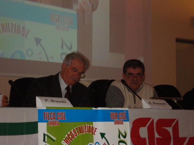 “Quale futuro per l'Umbria?”, 1997-2007 ricostruzione post terremoto. E poi? Competitività, sviluppo, sicurezza. Norme e rigore. Ieri, tardo pomeriggio, la sala convegni di Palazzo Trinci era affollata, pochi i posti liberi a sedere, tutti presenti per ascoltare le parole del Segretario generale Cisl nazionale, Raffaele Bonanni, che ha parlato e affrontato il problema lavoro: sicurezza in cantiere, salari, donne e diritti, sviluppo post sisma. “Le imprese vanno controllate, è necessario un lavoro di concertazione per lo sviluppo e la sicurezza sul lavoro – dice Bonanni – sostegno alla donna che decide di lavorare e costruire una famiglia. La politica ha il dovere di impegnarsi, noi quello da far rispettare e migliorare le leggi”. “È da sottolineare che la ricostruzione si è svolta in condizioni di eccezionale sicurezza e regolarità grazie al Durc (documento unico di regolarità contributiva) voluto dalla Cisl e dal Sindacato che ha legato l'erogazione dei finanziamenti pubblici a questa documentazione attestante la regolarità del lavoro, che ha consentito di avere pochissimi incidenti e nessun morto – afferma Pierluigi Bruschi, segretario generale Cisl Umbria – nonostante i circa 4000 cantieri aperti nel boom della ricostruzione. Però non si sono colte le occasioni e le opportunità di sviluppo: consolidamento, ammodernamento del settore edile, servizi – continua Bruschi – è fondamentale il dialogo tra i soggetti locali per la programmazione di politiche per il territorio”. Il sindacato, la politica, i soggetti attivi nella società devono lavorare di concerto, sviluppare i settori turismo e scuola: dati dell'ufficio scolastico regionale attestano che gli alunni e i bambini stranieri presenti nelle scuole d'infanzia dell'Umbria mettono la regione al primo posto nella classifica di questa ricerca. Il convegno è stato coordinato dal segretario Ust Cisl di Foligno Bruno Piernera. Hanno partecipato: Pierluigi Bruschi, segretario generale Cisl Umbria, Manlio Marini, sindaco di Foligno, Vincenzo Riommi, assessore regionale Bilanci e Affari Istituzionali, Gabriele Chiocchi, presidente regionale Confai, Luca Ferretti, presidente CNA edilizia, Alvaro Gasparri, presidente regionale federazione edili, Osvaldo Lecconi, segretario generale Filca Cisl Umbria, Walter Ceccarini, direttore Ance Umbria, Massimo Mariani, presidente ordine degli ingegneri di Perugia, Vinicio Bottacchiari, direttore Sviluppumbria, Giuseppe Virgilio, segretario generale aggiunto Filca Cisl nazionale. Raffaele Bonanni, segretario generale Cisl nazionale, ha concluso il convegno.