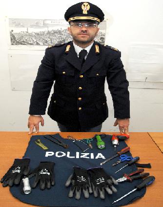 Perquisita anche la vettura, i poliziotti rinvenivano e sequestravano svariati arnesi da scasso, tra cui un seghetto per cartongesso, due forbici da elettricista, una pinza, una tenaglia e tre girativi, arnesi utilizzati dapprima per forzare l’ingresso, e poi successivamente riposti nell’auto, verosimilmente per effettuare una breve ricognizione per verificare se qualcuno li avesse notati.