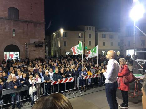 Il refrain è lo stesso e Nicola Zingaretti, segretario nazionale del Pd, impegnato nel giro umbro per la campagna elettorale di Bianconi, lo ripete dal palco di Foligno. La sfida è che con Salvini, che quella piazza l’ha riempita qualche giorno fa. Il colpo d’occhio è diverso, ma il Pd ci prova. D’altronde è una rincorsa e Vincenzo Bianconi lo dice: “Siamo due punti sotto, combattiamo”.