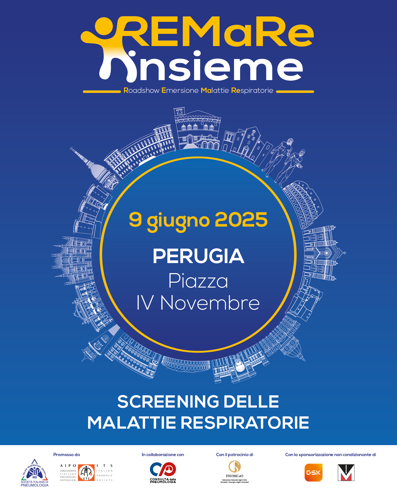 Il respiro della salute arriva nelle città italiane grazie all’iniziativa “REMaRe Insieme” (acronimo di Roadshow Emersione Malattie Respiratorie), promossa dall’Associazione Italiana Pneumologi Ospedalieri AIPO-ITS/ETS, dalla Società Italiana di Pneumologia SIP/IRS e dalla Consulta della Pneumologia in collaborazione con Università e Amministrazioni locali.
